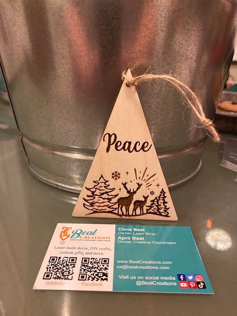 1 stunning, birch wood ornament from Beal Creations – they worked hard on creating this ornament with me & produced exactly what I envisioned.