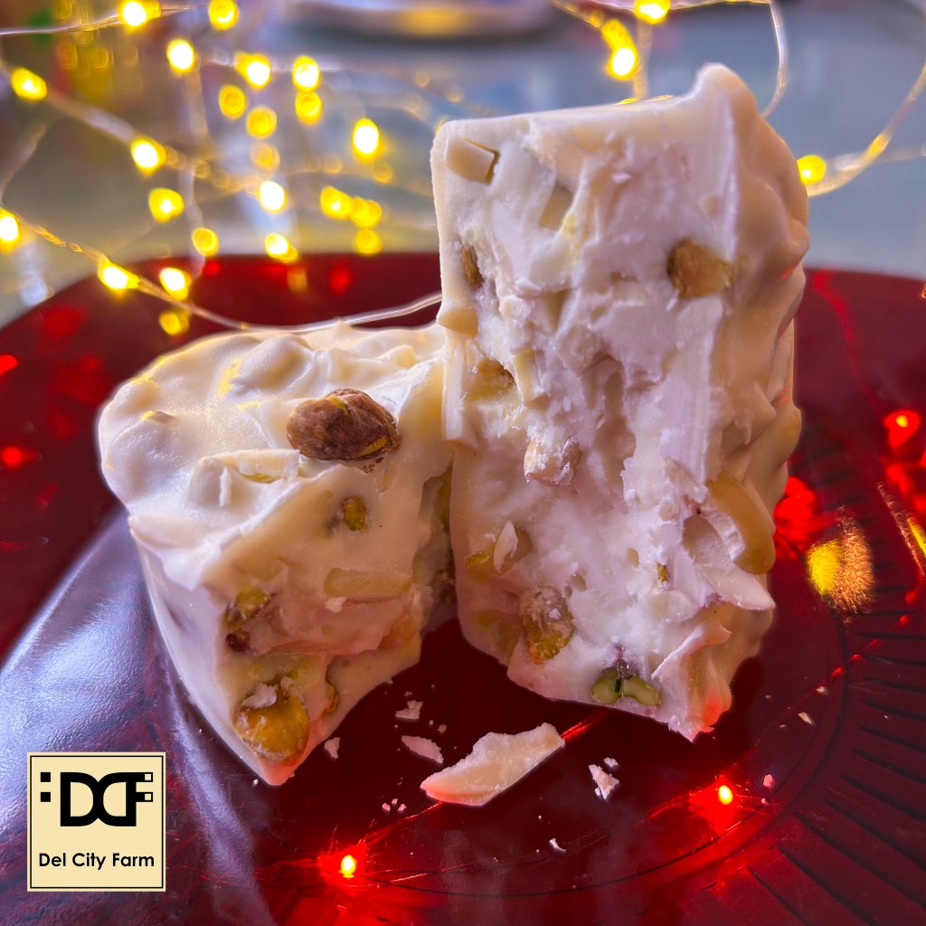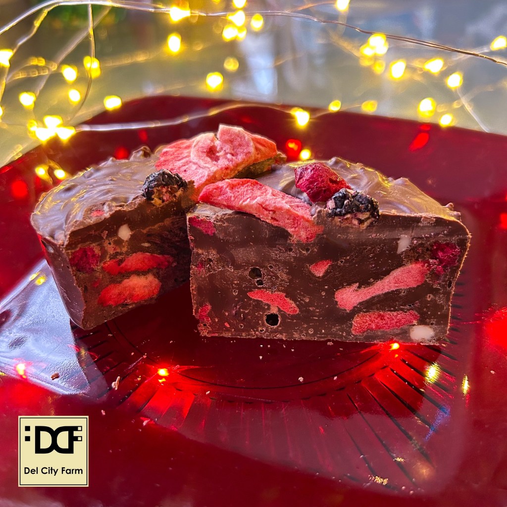Each candy, on average, weighs a very indulgent, meant-for-sharing 5+ ounces (approximately 3”x 3”x 2”) & is jam-packed with mix-ins. Using a combination of real chocolate