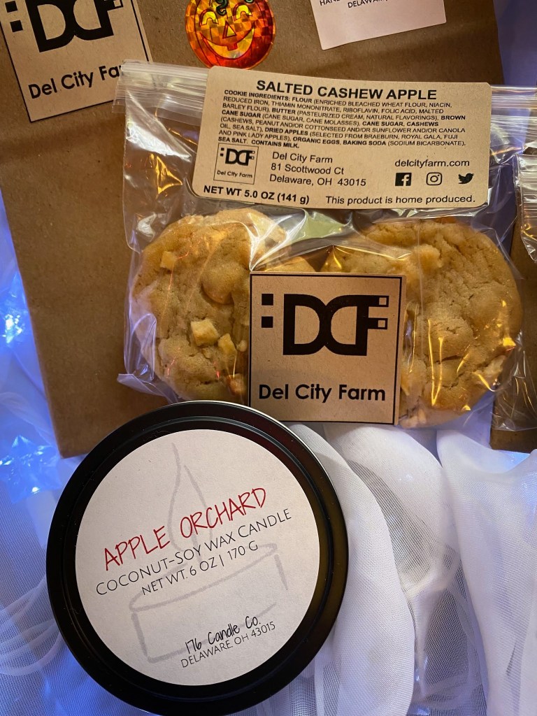 3. A dozen of my Salted Cashew Apple 🕯🍏 cookies paired with an “Apple Orchard” scented candle (Green Leaves • Pear • Apple • Vanilla) 🍎🍐🍃