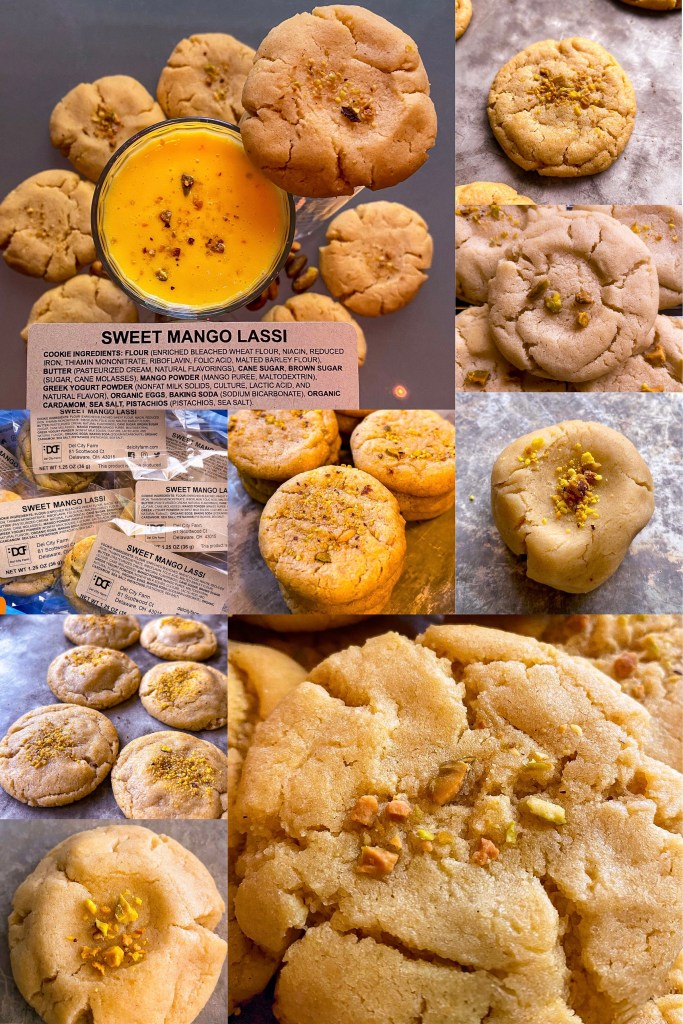 Sweet Mango Lassi โ with the sweetness of real mango powder combining with the tanginess of real yogurt powder, the slightly spiciness of the organic cardamom, and the salty crunch of the sprinkle of crushed, roasted pistachios on top, this cookie is an explosion of flavor any mango fan is sure to love ๐ฅญ๐ฅ๐งก